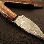 Enhance your outdoor gear with this Custom Handmade Skinning Knife, meticulously crafted for hunters and outdoor enthusiasts. Featuring a 3.5-inch full tang Damascus steel blade, this knife offers unparalleled sharpness, durability, and a stunning layered pattern. The handle is made from high-quality olive wood, providing a comfortable grip while adding rustic elegance. With an overall length of 7 inches, this knife is compact yet powerful, designed for precision skinning and cutting. Whether you're an experienced hunter or looking for a reliable EDC tool, this knife is the perfect blend of functionality and craftsmanship.