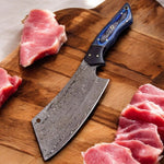 Custom Handmade Damascus Steel Best Cleaver Knife with Blue Pakka Wood Handle – 10" with Leather Sheath