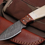 Custom Handmade Damascus Steel Deer Skinning Knife with Rosewood & Bone Handle, 8-inch