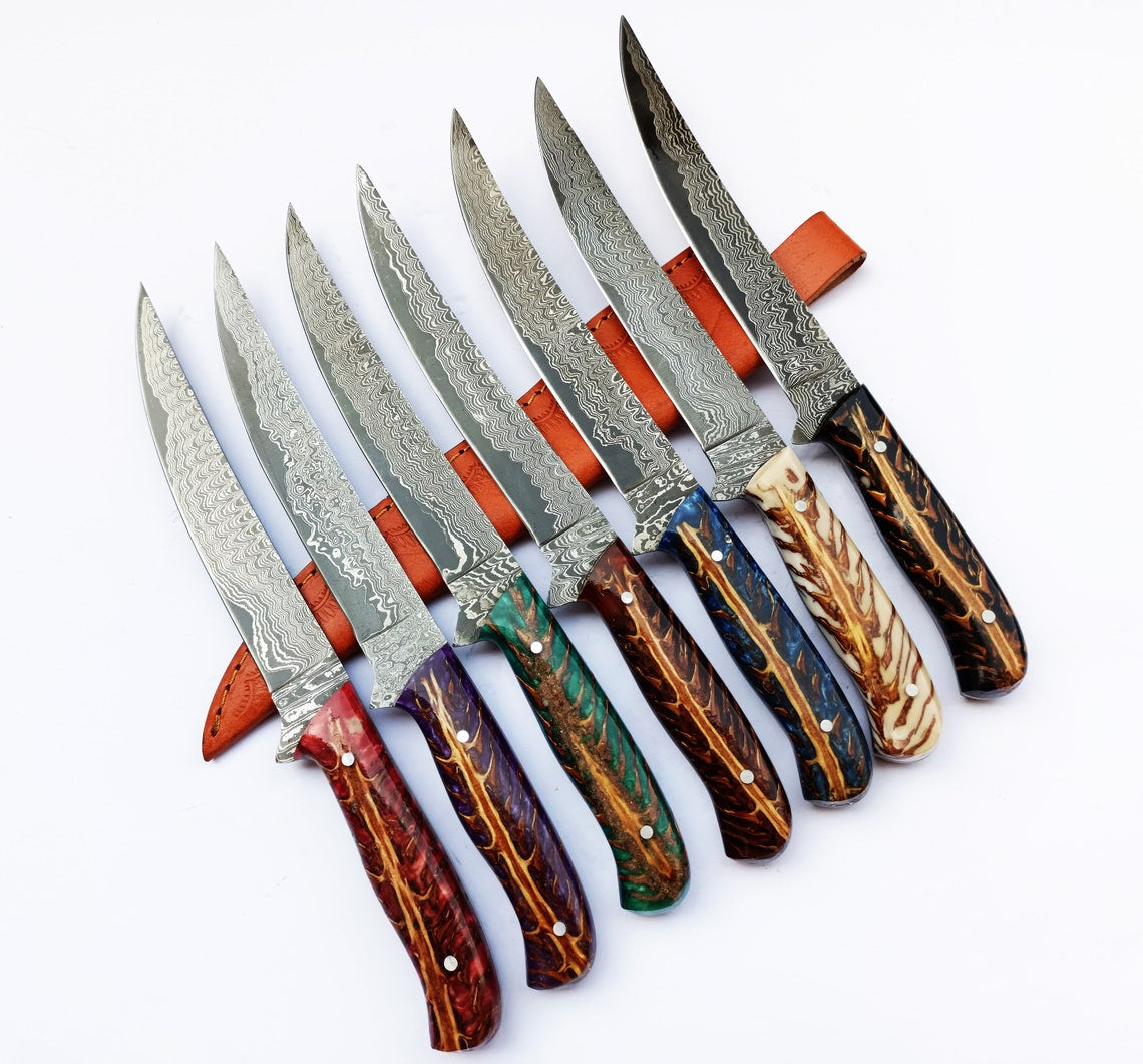 Whether you're a professional chef or a culinary enthusiast, this custom handmade Damascus steel fillet knife with an Epoxy resin Pine cone handle is a true masterpiece that combines artistry with functionality. Elevate your culinary experience with this exceptional knife that is sure to become a cherished addition to your kitchen collection.