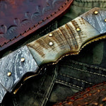 Handle Made Of Sheep Horn And Damascus Bolsters