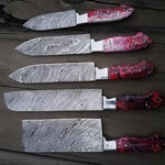Custom Handmade Damascus Steel Kitchen Knives Set