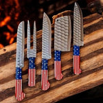 Custom Handmade Professional Chef Knives Set with Case – American Flag Handles