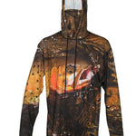 Our new cutthroat trout sun protective graphic fishing hoodie with art by AD Maddox depicts a cutthroat trout coming to the fly. Our fly fishing apparel works well as hiking clothes on the trail or anywhere else. Great sun protection, moisture wicking apparel.
