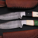 Custom Handmade Damascus Steel Hunting Knives Set