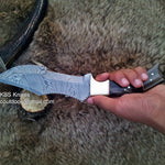 The knife comes with a horizontal Leather Sheath for safe and convenient carrying, allowing you to keep your blade within easy reach at all times. With a Rockwell Hardness of 55-58 HRC, the Damascus Steel Blade is built to withstand the rigors of the wild, maintaining its edge and reliability when you need it most.
