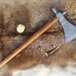 - Combining beauty and practicality, this Viking Tomahawk Axe is perfect for those who appreciate the beauty of handmade weapons and want to add a unique and powerful piece to their collection.