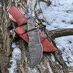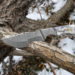 The Damascus Steel Handmade Tom Brown Tracker Knife with Color Bone and Damascus Bolster Handle is a beautifully crafted knife that is perfect for outdoor enthusiasts and collectors alike. This knife is handmade by skilled artisans using traditional techniques, resulting in a unique and high-quality product.