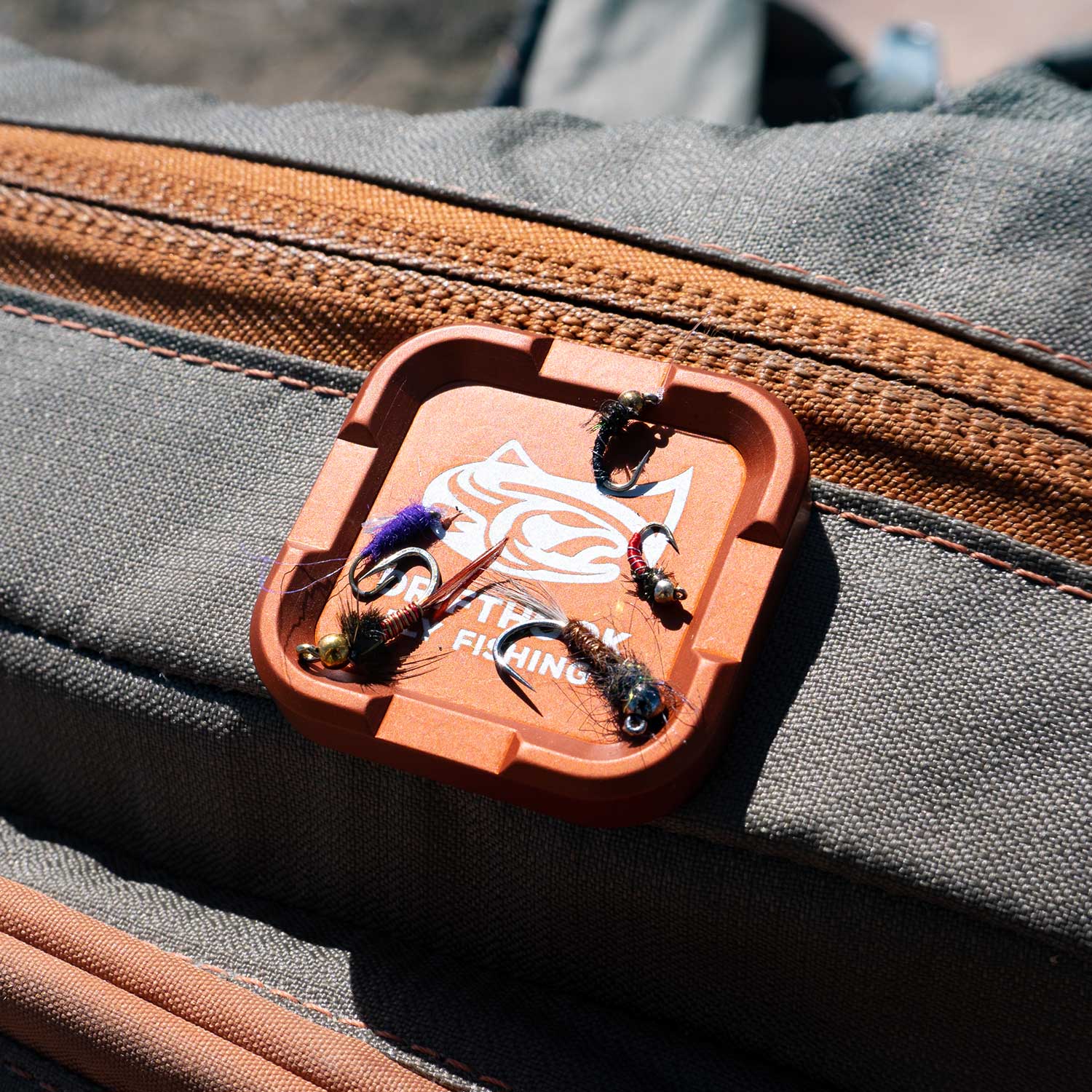 The Mag Grab™ Mini presents a beautiful modern design accompanied by a gorgeous engraving. The high-strength magnet allows for over a dozen flies to be attached without a problem and is strong enough to hold various hand tools, such as forceps, nippers, or pliers, to allow for quick and easy access when they are needed most.