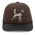 The English Setter rope cap is built on our Riverside 6-panel with a wax cloth visor.  Built with a durable canvas fabric with structured front panels and quality 10k stitch count English Setter embroidery. Our COMFORT SNAP™ closure couple the stretch of elastic with the adjustability of a snapback. Lastly, This new bird dog hat features American Fit™ sizing which fits men's head sizes MD - XX.
