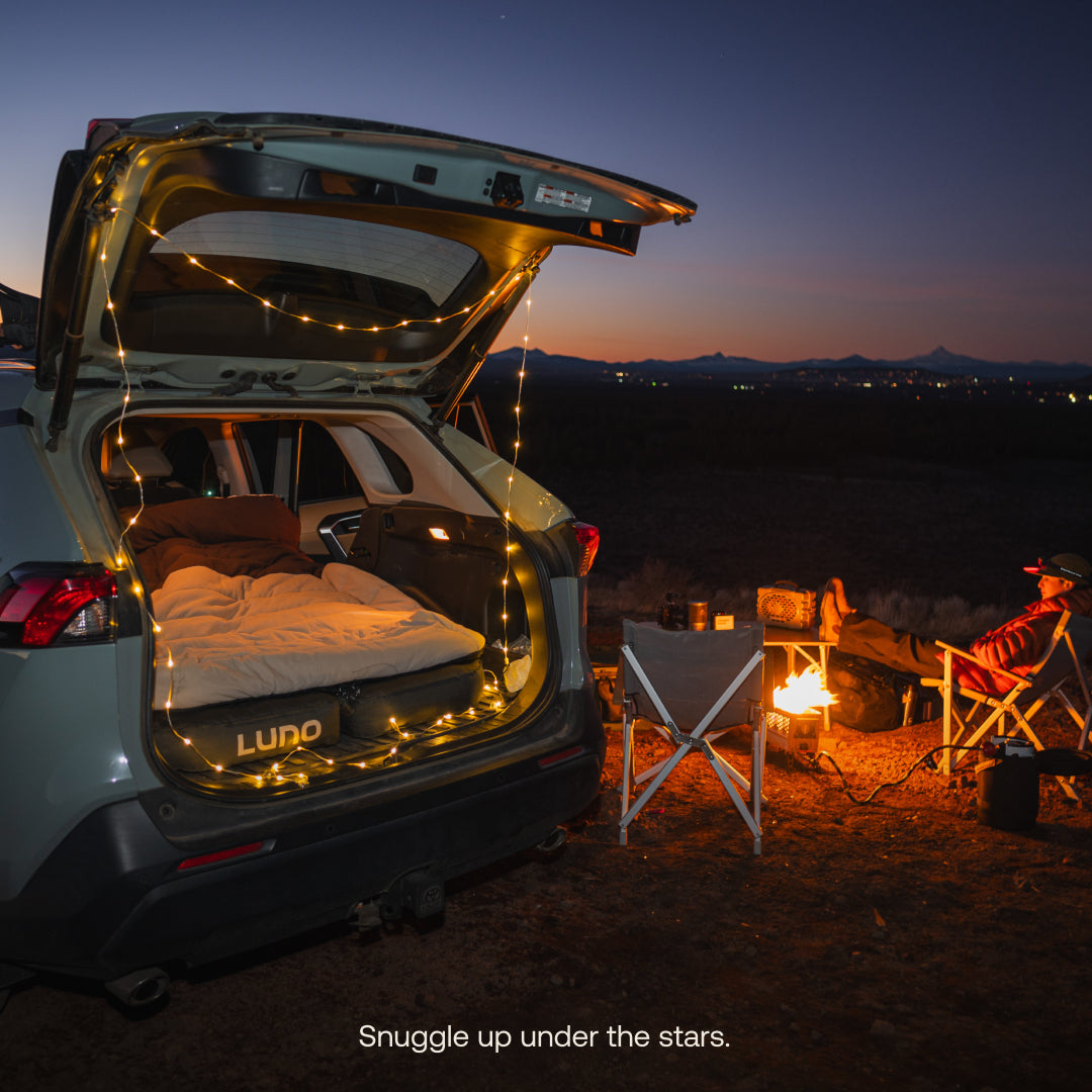 The Luno double-wide Fitted Sleeping Bag Comforter is a cross between a technical sleeping bag and your cozy duvet from home. It’s roomy enough for two, features a cushioned hood, soft yet durable fabric, warm insulation, a full-length zipper for ventilation, and a removable top layer for fireside hangs. Designed to pair with any of our award-winning vehicle mattresses–car camping just got cozier.