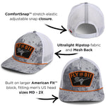 • COMFORT SNAP™ rear closure couples elastic stretch with adjustability of a snapback