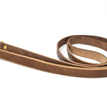 The Whiskey Dog Full Leather Leash is a staple for any dog. Choose from our favorite leather options: Black Latigo, Brown Latigo, Natural Brown Chromexcel, Natural Veg Tan, Poppy Red, Kelly Green, and Crazy Horse Buffalo.  The bolt snap, D-ring, and rivets are all made of solid brass to resist corrosion and last a lifetime.