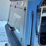 Equipped with integrated gas struts, accessing your truck bed contents is effortless. The fully opening pop-top lid allows you to stand inside the cap and load oversized items from the top, while also providing direct access to your rooftop tent. Mounting panels on the exterior side doors enable customization with various accessories to suit your needs and lifestyle.
