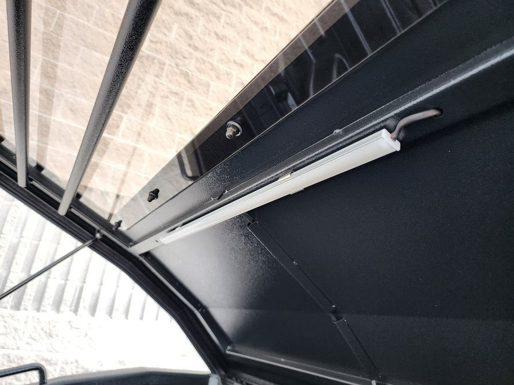 • The cap includes an internal LED strip light that comes pre-wired to a switch in the rear corner of the cap by the rear hatch. Simply connect the positive & negative wires to a 12V power source of your choice.