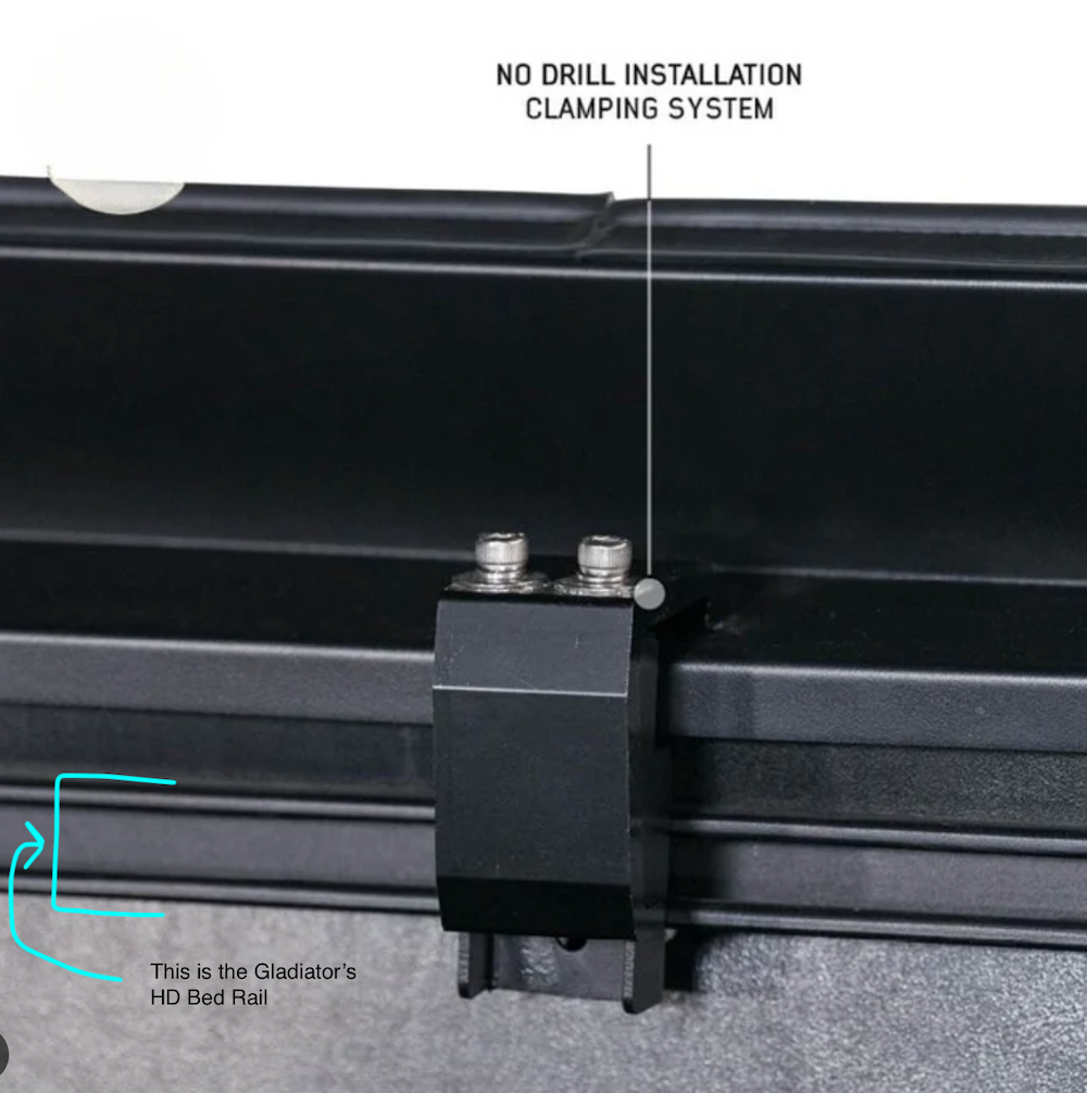 Option 2 (Alternative): This option is for those who don't have the Jeep Gladiator Trail Rails and don't want to drill the bed of the truck. By choosing this option, you will receive "traditional" (or generic) topper clamps. (This is also a DRILL-FREE install.)