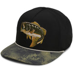 Largemouth Bass Rope Cap 5-panel trucker hat features ultra lightweight micro-ripstop fabric. Coupled with a structured front with detail largemouth bass embroidery. Additionally, our COMFORT SNAP™ elastic closure which couples the stretch fit of a custom cap with the adjustability of a snap back. Lastly, this Bass fishing rope cap features American Fit™ sizing which fits men's head sizes MD - XX.