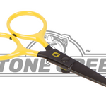 Appropriately named, this is a razor-sharp pair of scissors. One of the straight blades is serrated, and the other is non-serrated, aiding in grabbing of materials to eliminate material slip. The knurled tension knob allows for adjustments to specific applications.