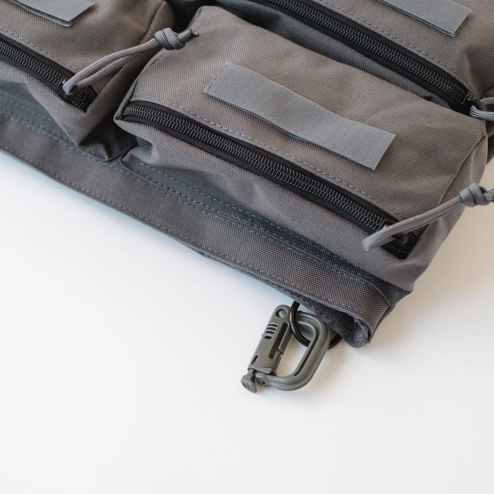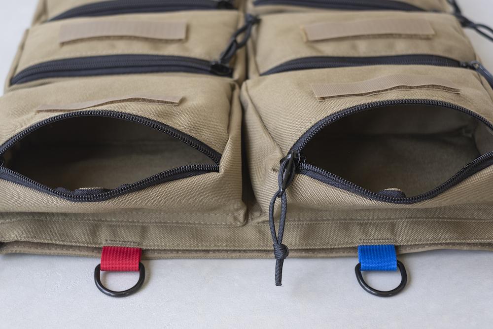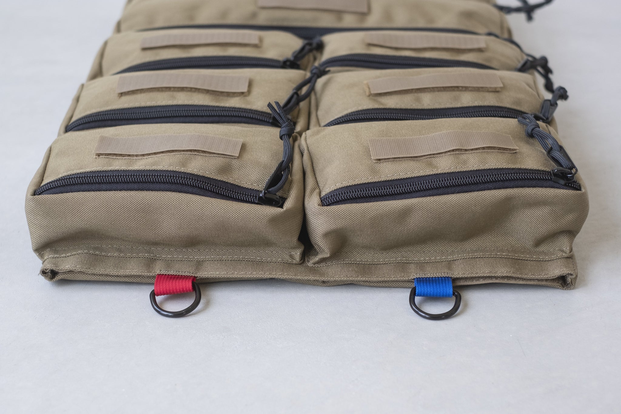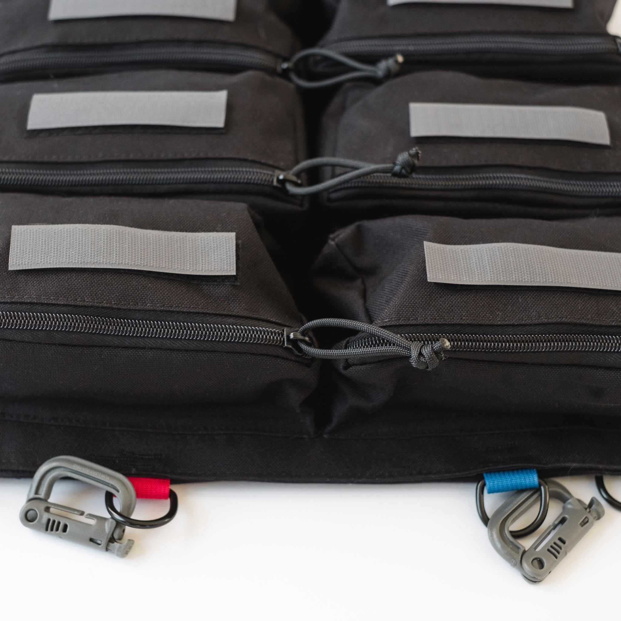 This is the original 302 Caddy as designed for the UH60 Blackhawk medics. Used as a wall hanger or center folding tote, the 302 Caddie boasts 9 pockets and removable hook labels for easy ID. Our commercial version is 100% Made in the USA and constructed of rugged 1000d Cordura Nylon with YKK zippers. D-ring mounts (2ea) top and bottom (4 total) and PALS ladder runs vertical on the backside for multiple mounting attachment options.