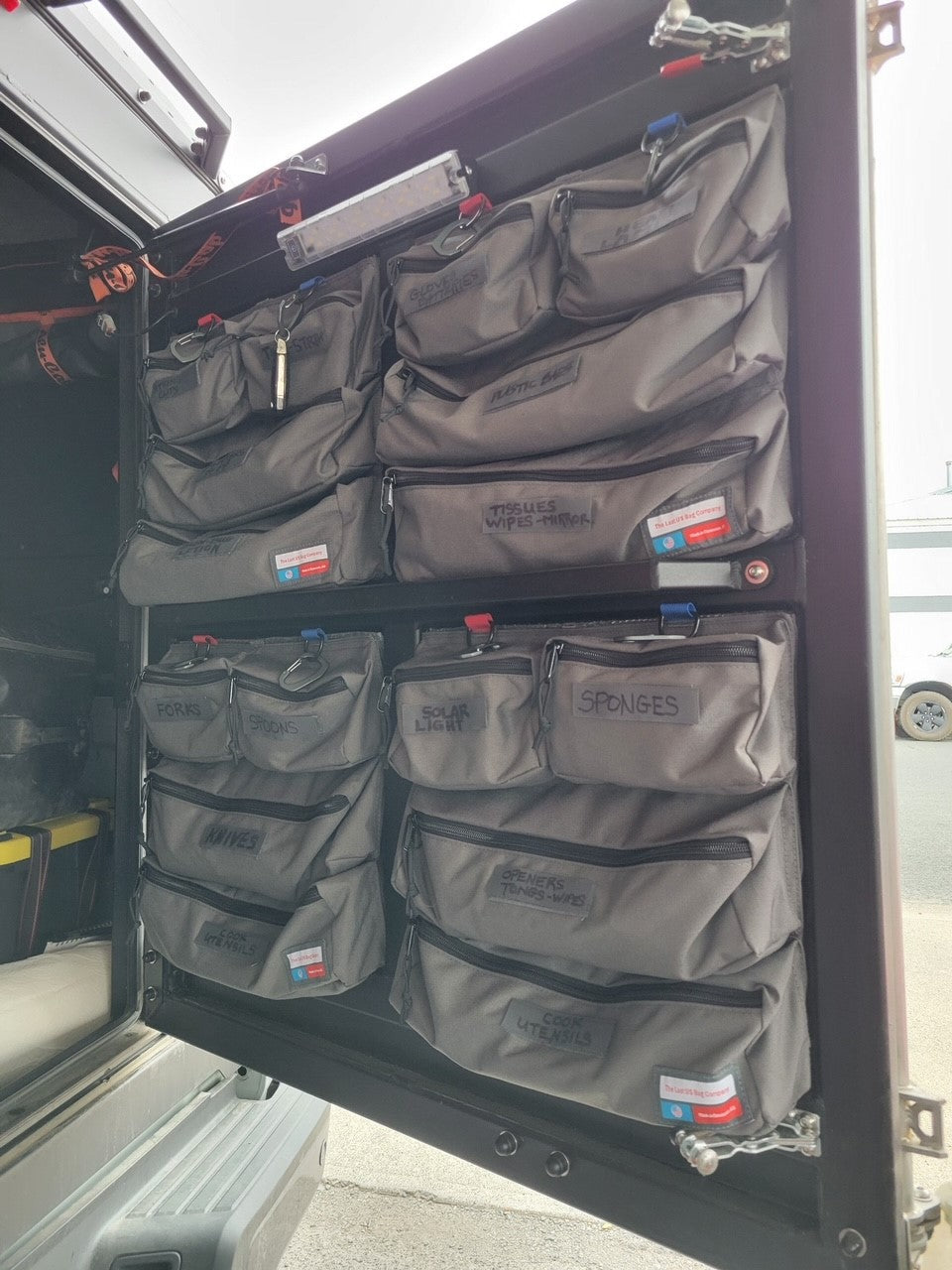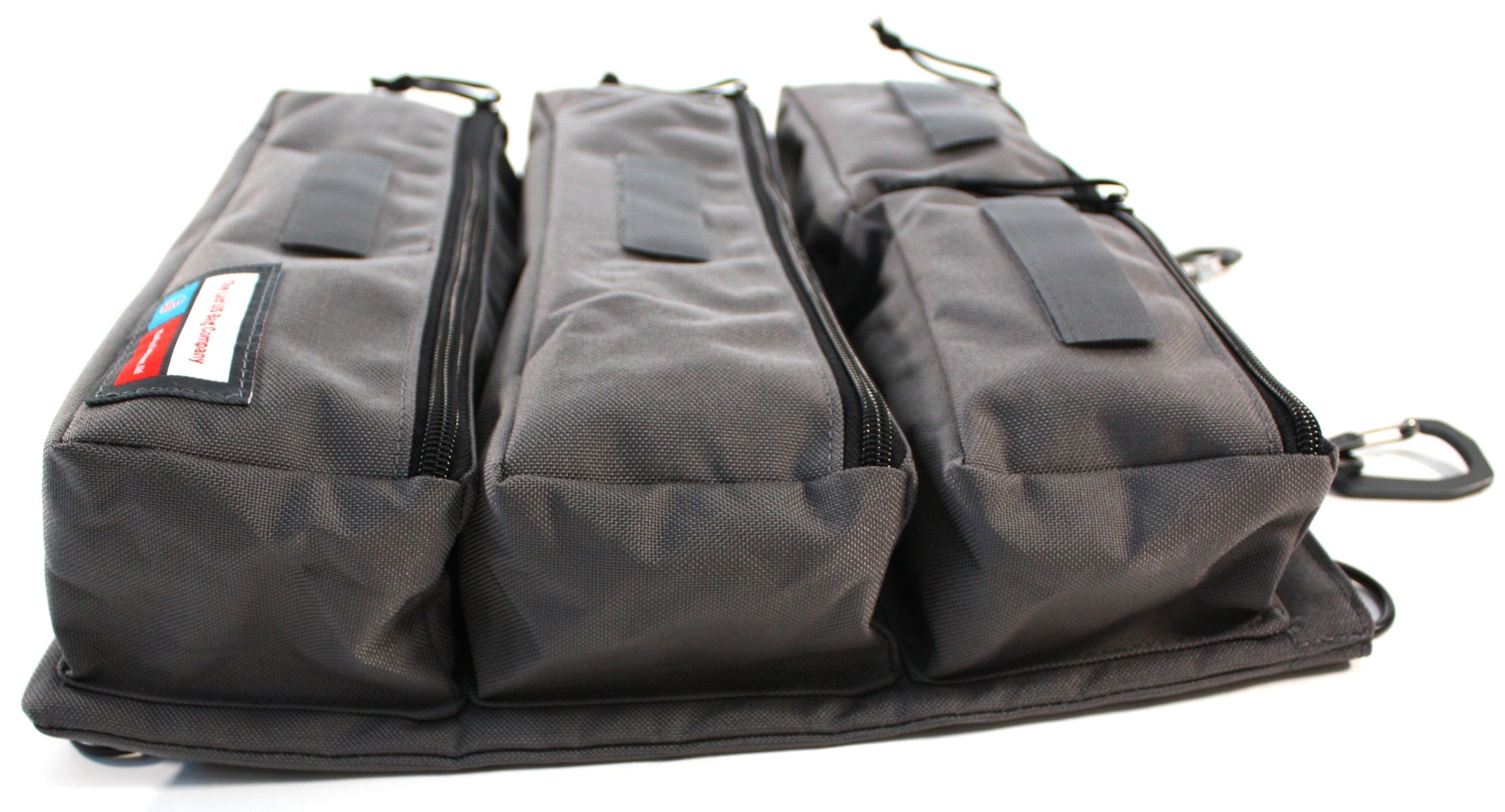 The LUSB154 Half Caddy is a reduced size version of our most popular 302. Great storage solution for smaller spaces inside a vehicle, around camp, or in the garage! This half caddy would also be useful for tools and first aid storage. 2 small pockets 7" x 3.5" x 2.5" and 2 large pockets 14" x 3.5" x 2.5".