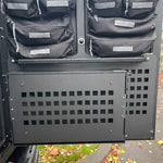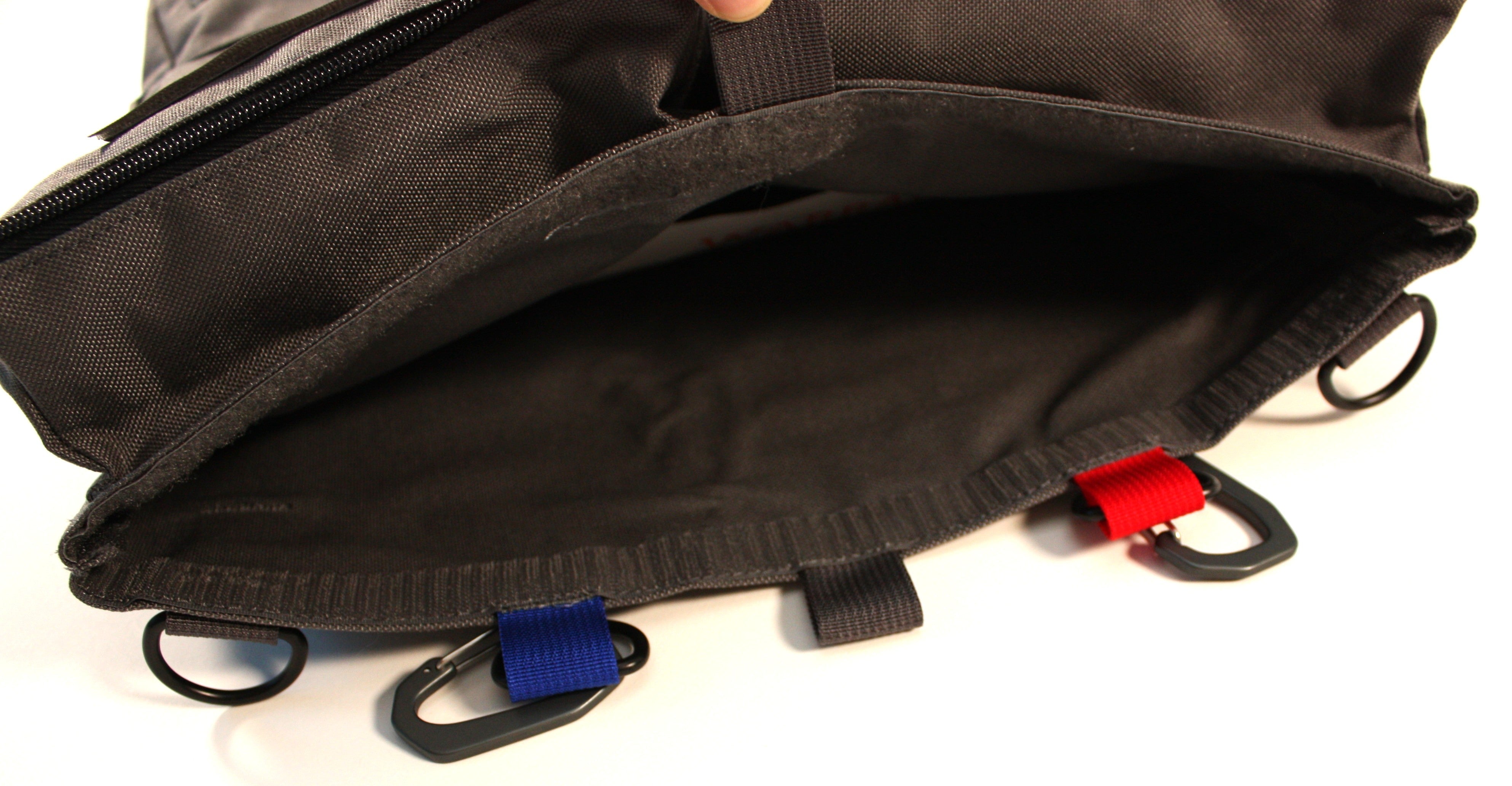 Large sleeve pocket on back panel. Four Each powder coated d-rings for mounting. Handy write-on tabs on pockets.