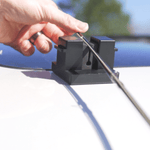 A simple, compact Fly Rod & Reel Holder that attaches to any vehicle and is multi-functional to hold your rod on your vehicle while traveling from hole to hole or to hold your rod while you are "lining up" your rod!Compact enough to keep in your glovebox or gear bag!The new, patented two piece... "ON THE FLY" - Fly Rod Holder is Easy to use and designed to hold most fly rod and reel models. The two detachable interlocking pieces each have four Ultra Strong Magnets for attaching to your vehicle. The magnets also have a rubber coating that protect vehicle-s surface.