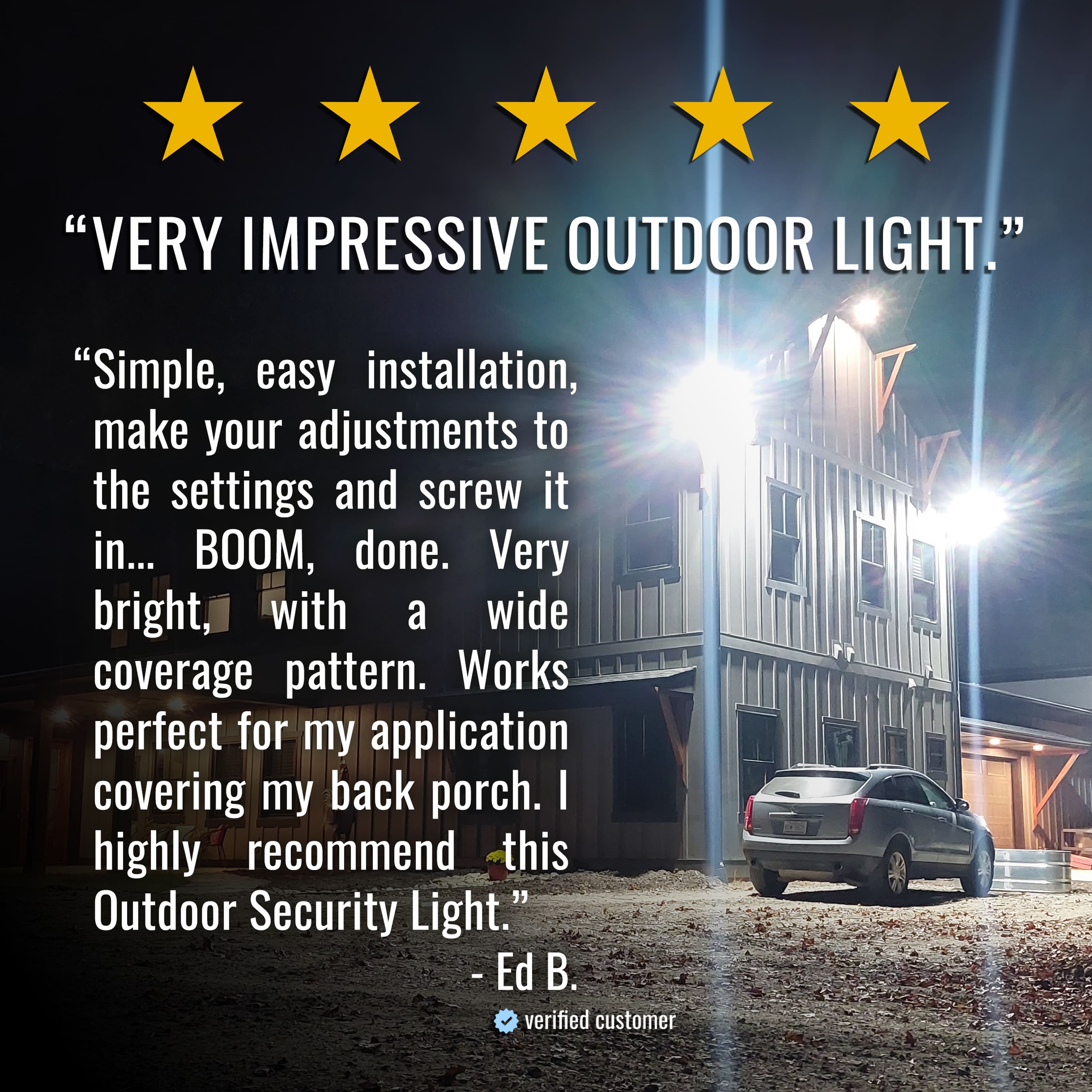 Upgrade your home security effortlessly with our Outdoor Security Motion Flood Light. With easy screw-in installation and adjustable dual motion sensors, this ultra-bright LED light offers customizable operating modes for added convenience. Enjoy 6000 lumens of wide coverage with energy-efficient LED technology. No tools required for installation. IP55 weather resistant for outdoor durability. Say goodbye to outdated security lights!