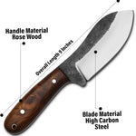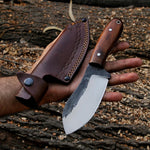 Conquer the wilderness with the RidgeHunter Survival Knife, a durable and dependable tool for outdoor enthusiasts. Measuring 9 inches overall, this knife boasts a 4.5-inch high-carbon steel blade, known for its excellent edge retention and toughness, perfect for cutting through tough materials. The elegant rosewood handle offers a secure, comfortable grip, even in harsh conditions. Whether you're camping, hiking, or facing survival situations, the RidgeHunter is built to handle it all. Comes with a protective leather sheath for easy carrying and safe storage.