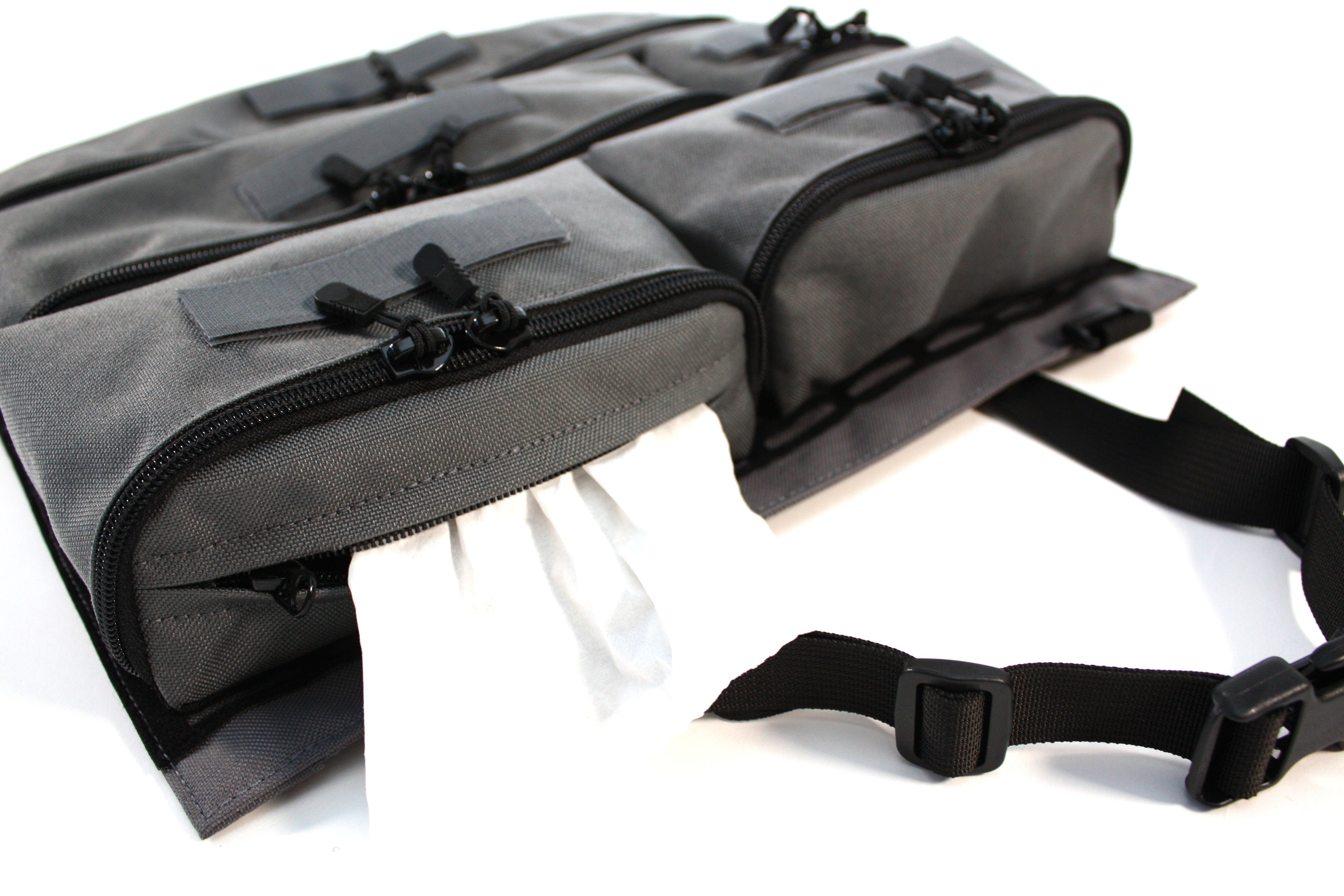 You’re in control. With five removable pouches in four sizes (plus an optional XXL size available), you decide how to organize. Velcro-backed and MOLLE-compatible, every pouch can be repositioned or attached to other MOLLE systems. Whether you need to grab tissues quickly or keep tools organized, the RoadRuck is ready.