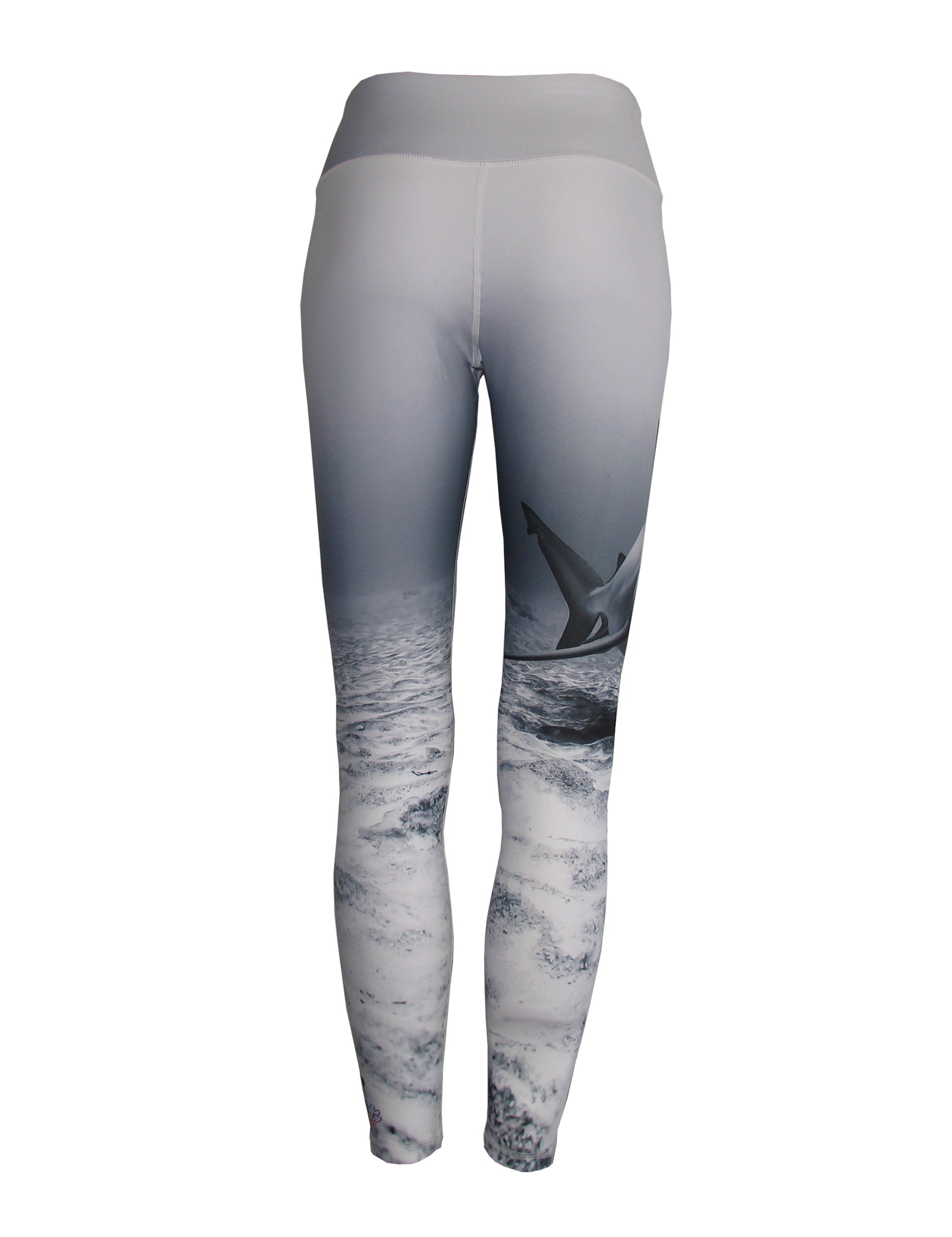 Christian Vizl captures a shark prowling the ocean off the coast of Mexico on this performance yoga-style legging.  We make the best women's surf and dive clothing available.  Wear as beach wear, workout leggings, long underwear base layer, or for a night on the town.  Our surf and dive apparel works well as sun protective clothes on the beach or as a base layer for active sports.  Moisture wicking apparel with great sun protection.  ORDER NOW FOR AN EXPECTED SHIP DATE:  JUNE 1, 2025.