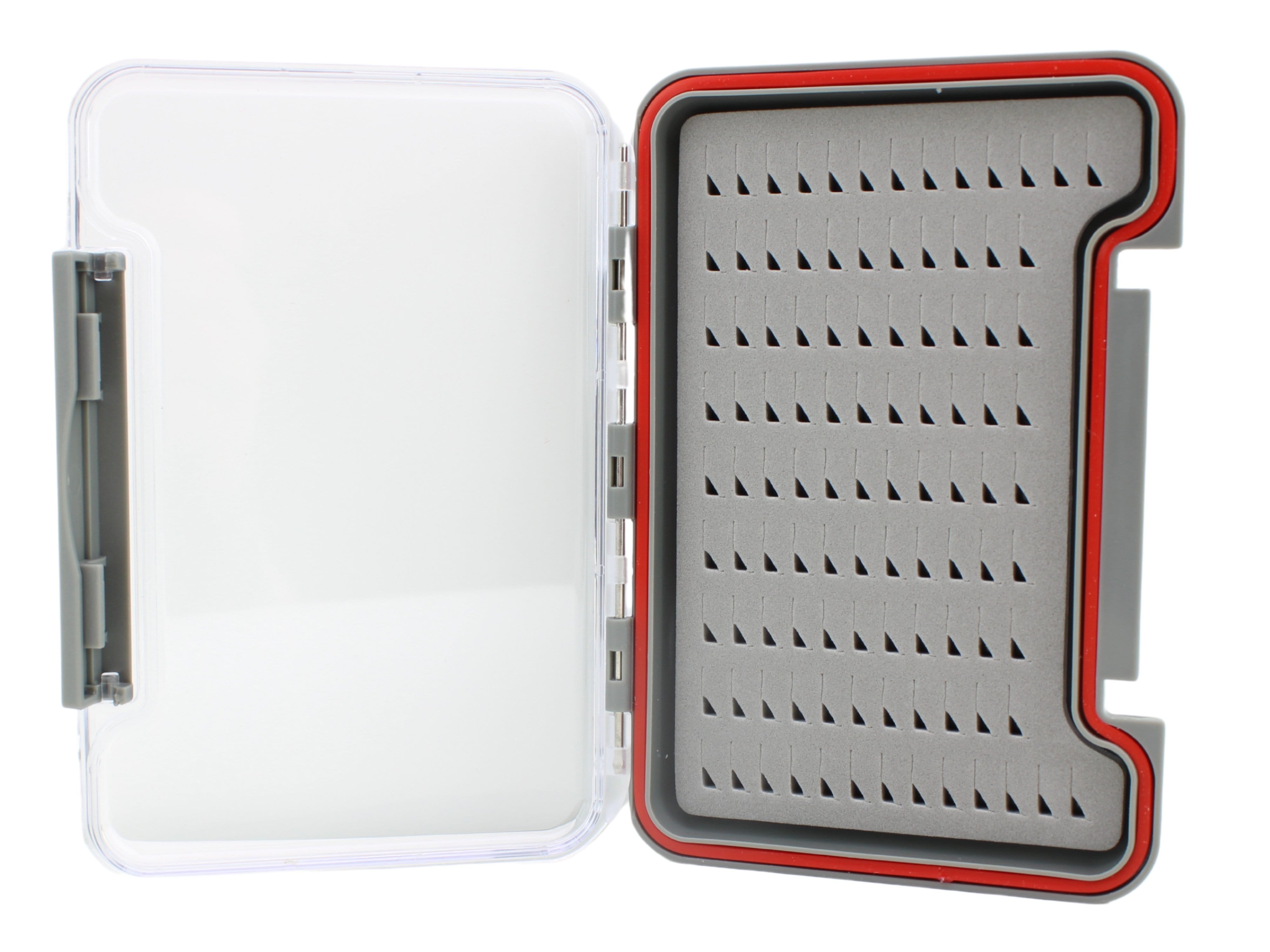 Wild Water's Small Thin Fly Box is a great way to organize all your flies! This box measures 5 3/8 inches (Length) x 3 3/4 inches (Width) x 3/8 inches (Depth). This box is hinged on one side and folds open. This box has rigid pre-cut foam for easier hook insertion.  This box can hold over 100 flies. This small thin fly box with foam lining also has a water-tight seal to keep all your flies dry.