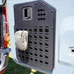 Introducing the WHITE TOP ADVENTURES molle panels, specifically designed for Mercedes Sprinter rear doors without pockets (e.g., cargo model as shown in the photo), ranging from 2019 to the current VS30 model.