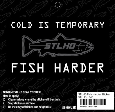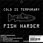 The STLHD Fish Harder Sticker means business. Measures roughly 3" x 5"