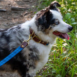 The foundation of these collars is a highly durable, 3/4" webbing for the small collars and 1" webbing for the large collars. The leather we selected is a 6/7 ounce Latigo leather, which will withstand wet/outdoor conditions and is flexible.  The buckles, D-rings, and rivets are all made of solid brass to resist corrosion.