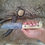 The Wilderness Edge: Custom Handmade Damascus Steel Outdoor Hunting Knife | Bone Handle | 10 Inches | KBS Knives
