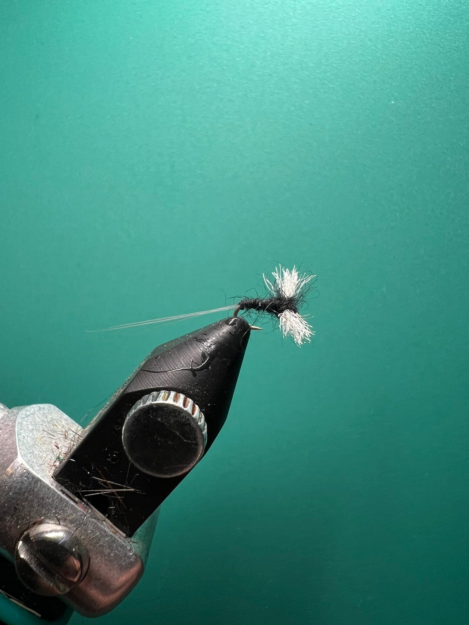 Our Trico Spinner is tied with a black body and white wings for visibility.