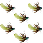 Tungsten Bead Chartreuse Mop Fly Tactical Jig Czech Euro Nymph Barbless Fly - 6 Flies Size 14