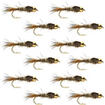Tungsten Bead Head Gold Ribbed Hares Ear Nymph 1 Dozen Flies - Size 10