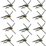 Tungsten Bead Head Rubber Legs Black Olive Zebra Copper John Nymph Fly Fishing Flies - 1 Dozen Flies Hook Size 14