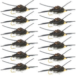 Set of 12 hand tied Tungsten Bead Kaufmann's Stone Fly Nymph Flies - Hook Size 4