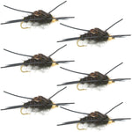 Set of 6 hand tied Tungsten Bead Kaufmann's Stone Fly Nymph Flies - Hook Size 6