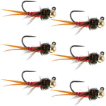 Tungsten Bead Tactical Jig Copper John Red Czech Nymph Euro Nymphing Fly - 6 Flies Size 12