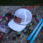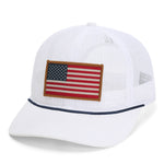the Breeze vintage all mesh rope cap American Flag Cap is a crushable, lightweight, and breathable all mesh cap. This vintage white rope cap features a full mesh crown, navy rope, and curved visor. Additionally full color American Flag patch on front center.  Coupled with our American Fit™ design, fitting US heads sizes MD - 2X for a better fit a large head sizes. Lastly, the ComfotSnap Snapback closure offers the comfort of a stretch fit with the adjustability of a snapback.