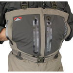 • WIDE SUSPENDERS, with buckles featuring ATTACHMENT POINTS for nippers, tippet, or hemostats