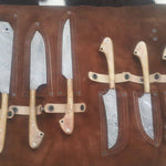 This set includes a cleaver, hawkbill, chef, boning, skinning, and dressing knife, all securely packed in a custom leather roll kit—perfect for transport to the field, processing shed, or kitchen. Whether you're breaking down elk in the backcountry or prepping livestock on the ranch, this set has the edge, control, and durability to get it done right.