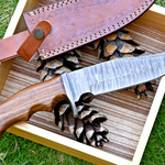 Introducing our exceptional Hunting Knife, meticulously crafted to cater to the needs of hunters and outdoor enthusiasts alike. This knife features a robust Damascus steel blade, renowned for its exceptional sharpness and durability. The handle is crafted from luxurious Rosewood, providing both elegance and durability, while the Damascus guard adds a touch of sophistication and protection. Here are the standout features: